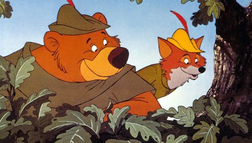 Robin Hood and Marion are foxes. Little John is a rotund bear