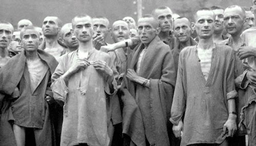 images of emaciated prisoners and dead bodies)